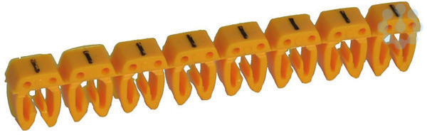 Legrand Kennzeichnungssystem CAB 3, für Leiterquerschnitt 0,15 bis 0,5 mm², Symbol:"-" (Schwarz auf gelbem Hintergrund), Kennzeichnung von Leitern mittels Ziffern, Buchstaben und Symbolen, zum Aufklipsen auf Leiter.