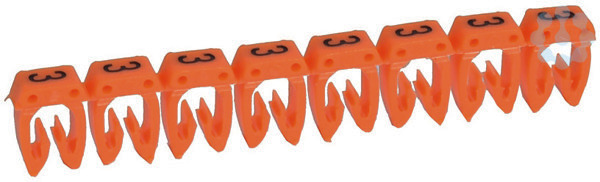 Legrand Kennzeichnungssystem CAB 3, für Leiterquerschnitt 1,5 bis 2,5 mm², Ziffer:3 (Orange), Kennzeichnung von Leitern mittels Ziffern, Buchstaben und Symbolen, zum Aufklipsen auf Leiter.