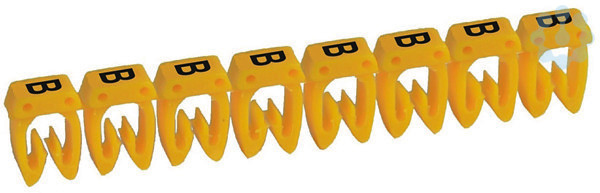 Legrand Kennzeichnungssystem CAB 3, für Leiterquerschnitt 1,5 bis 2,5 mm², Buchstabe:B (Schwarz auf gelbem Hintergrund), Kennzeichnung von Leitern mittels Ziffern, Buchstaben und Symbolen, zum Aufklipsen auf Leiter.