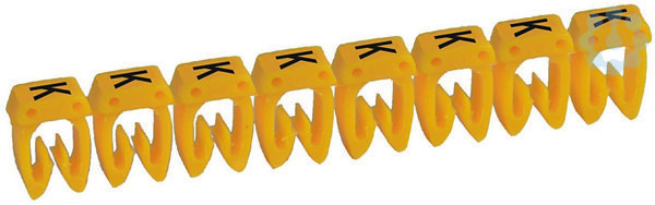 Legrand Kennzeichnungssystem CAB 3, für Leiterquerschnitt 4 bis 6 mm², Buchstabe:K (Schwarz auf gelbem Hintergrund), Kennzeichnung von Leitern mittels Ziffern, Buchstaben und Symbolen, zum Aufklipsen auf Leiter.