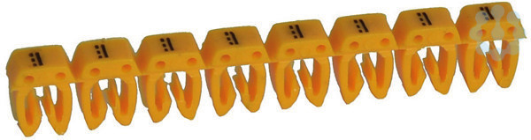 Legrand Kennzeichnungssystem CAB 3, für Leiterquerschnitt 0,5 bis 1,5 mm², Symbol:"=" (Schwarz auf gelbem Hintergrund), Kennzeichnung von Leitern mittels Ziffern, Buchstaben und Symbolen, zum Aufklipsen auf Leiter.