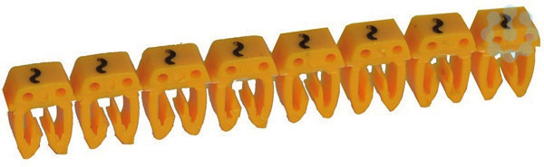 Legrand Kennzeichnungssystem CAB 3, für Leiterquerschnitt 4 bis 6 mm², Symbol:"~" (Schwarz auf gelbem Hintergrund), Kennzeichnung von Leitern mittels Ziffern, Buchstaben und Symbolen, zum Aufklipsen auf Leiter.