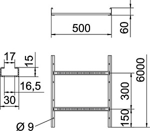Kabelleiter 60x500x6000mm gelocht mit VS-Sprosse