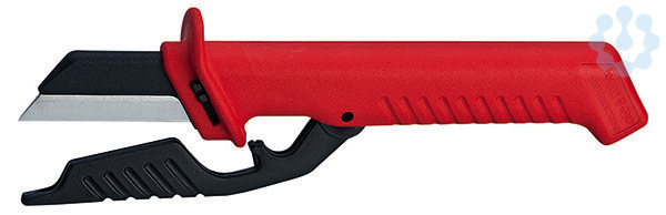 98 56 Kabelmesser Gerade Klinge mit Spezialschliff; auswechselbar. Mit klappbarem Klingenschutz, unverlierbar im Griff integriert. Klingenrücken zur Vermeidung von Kurzschlüssen mit Kunststoff überzogen. Griff mit Abgleitschutz. - Klingenlänge: 50mm - VDE-geprüft: Ja