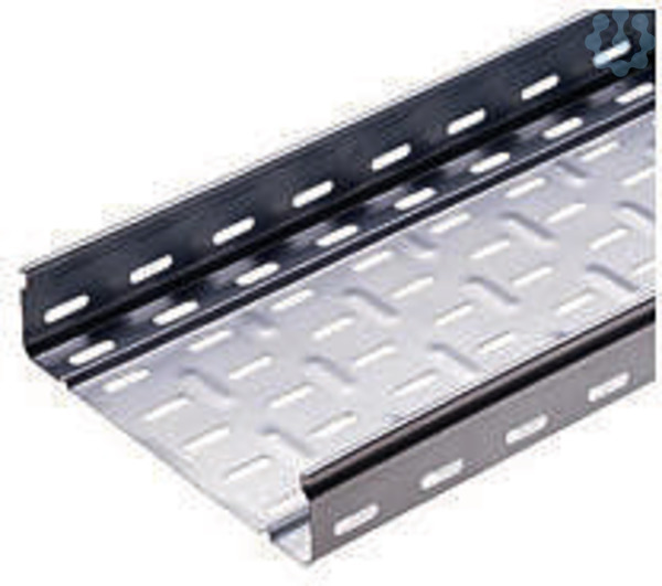 Kabelrinne BRN perforiert, mit abgerundeten Kanten und hoher Tragfaehigkeit durch Querrippen am Rinnenboden.