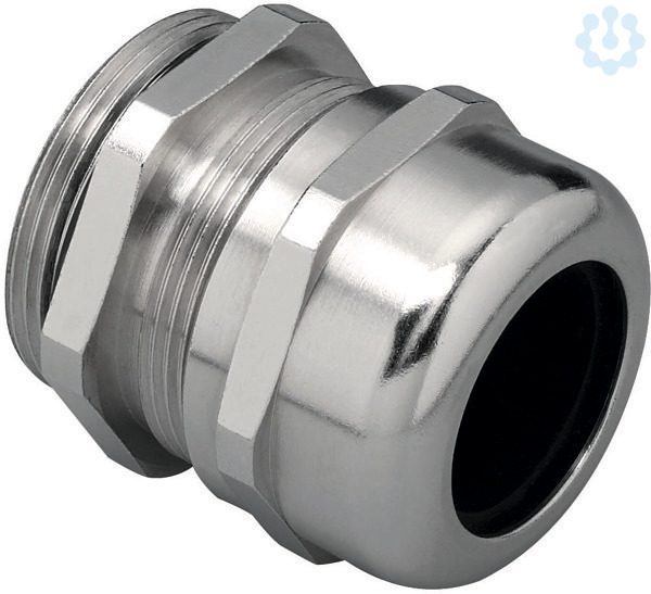 Kabelverschraubung aus vernickeltem Messing fuer ATEX-Umgebungen ohne Befestigungsmutter.