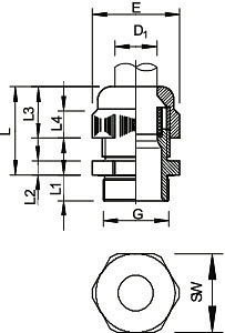Mit Pg-Anschlußgewinde nach DIN 40430 robuste Kabelverschraubung in Hutmutterbauart mit großem Dichtbereich, sowie Zugentlastung und Verdrehschutz für hohe Dichtigkeitsansprüche. Dichtring aus Chloroprene-/Nitrilkautschuk, angespritzte Dichtrippen, daher kein Anschlußgewinde-Dichtring erforderlich, geprüft nach VDE 0619 Schutzart IP 68 bei 5 bar 1 h