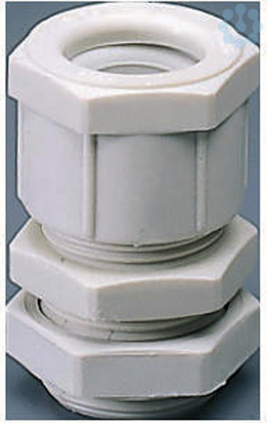 Kabelverschraubung aus Kunststoff mit Befestigungsmutter fuer staub- und wassergeschuetzte Installationen.