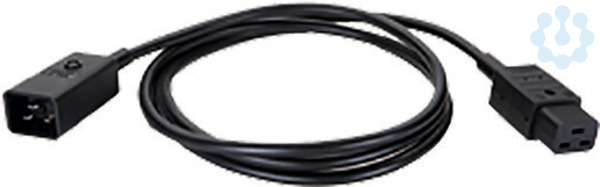 Stromverteiler Verlängerung Stromleitung 16A/ 250V~ 1,5 m H05VV-F 3G 1,5 mm² schwarz C20 Kaltgeräte- Stecker IEC 60320, zentral, montiert C19- Kaltgerätesteckdose IEC 60320, zentral, montiert unverpackt