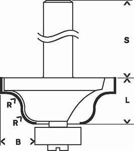 Kantenformfräser B, 8 mm, R1 6,3 mm , B 12,7 mm, L 17,1 mm, G 61 mm