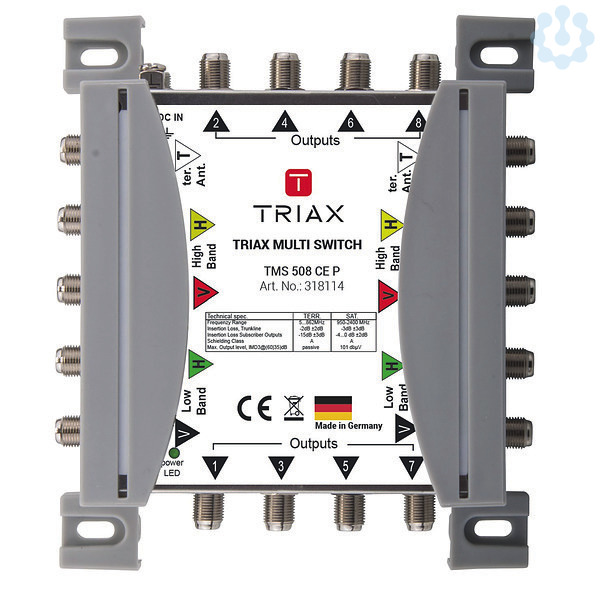 Die TRIAX TMS 5xx CE P sind kaskadierbare SAT-ZF-Multischalter für bis zu 1 SAT-Positionen + Terrestrik. Die Schalter gibt es in verschiedenen Ausführungen mit 6 bis 32 Teilnehmeranschlüssen und passiver Terrestrik. Gespeist werden sie über ein externes Netzteil (TMS 1520-55 PSU, 15 V, 2 A) oder über einen aktiven Multischalter der als Abschluss der Kaskade gesetzt wird.