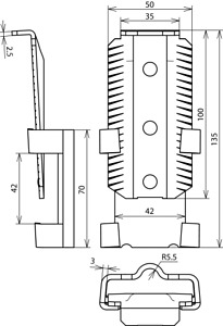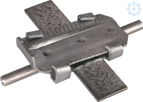Keilverbinder, zum Verbinden von Rund- und Flachleitern im Betonfundament. Ausführung für T-, Kreuz- und Parallelverbindungen mit Rasterstellung im Keil.