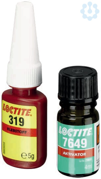 Loctite-Kleber für Glasbruchsensoren SPGS und Erschütterungsmelder EMA, bestehend aus Kleber (5 ml) und Aktivator (4 ml).