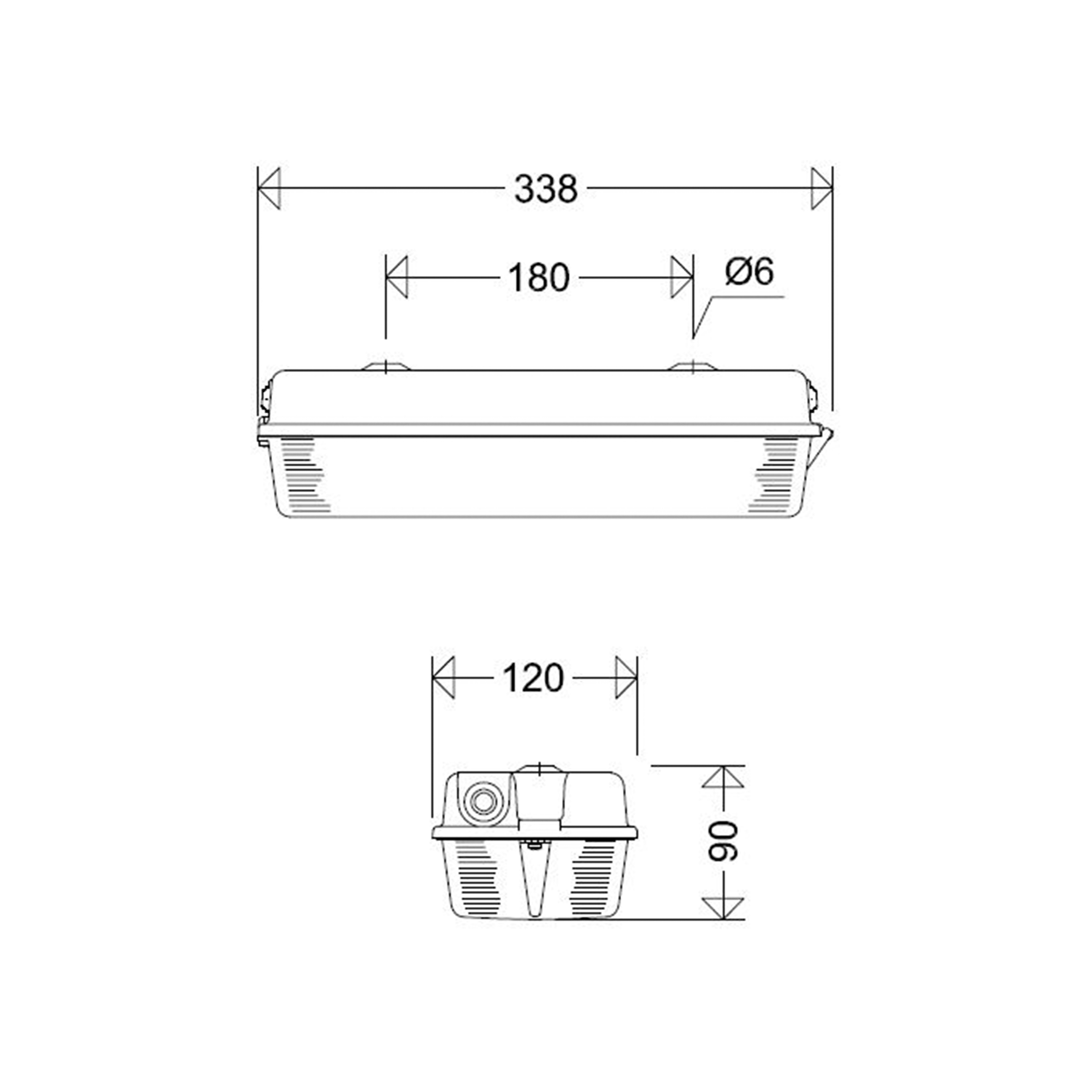 LED-Notleuchte, 5 W, 310 lm, Einzelbatterie, Selbsttest, Brenndauer 3 h, SKI, IP65, symmetrisch-breitstrahlend, 4000 K, Ra≥ 80, Ta 0 °C/+30 °C, L80>70000 h (@ Ta max), L90>50000 h (@ Ta 25°C), L70>100000 h (@ Ta max), Wanne PC satiniert, Verschluss Edelstahl (1.4301), Gehäuse Kunststoff (PC), Farbe weiß, für Lebensmittelbereiche, EAN/GTIN:4041254312453.Kleine schlagfeste LED-Notleuchte mit Einzelbatterie und automatischer Selbstüberwachung gemäß EN 62034. PC-Gehäuse, satinierte PC-Abschlusswanne, an einer Seite mit Mehrfachscharnier, gegenüberliegend unverlierbare Schraube, Silikondichtung. Lackierter Aluminiumreflektor mit EVG und LED-Modul. NiMH-Batterie mit Tiefentladeschutz und elektronischem Ladesystem, automatischer Funktionsüberwachung und optischer Anzeige der Prüfergebnisse.