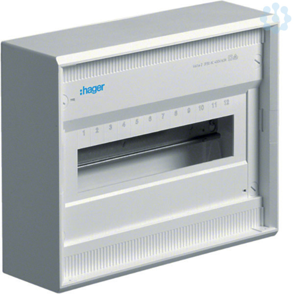 Kleinv.,Volta,APV,1x12PLE,IP30,245x305x96,5mm Außenmass. Installationskleinverteiler Aufputz aus Kunststoff, zertifiziert nach OVE EN 61439-1/-3. Der Verteiler ist außerdem geprüft nach OVE EN 60670-24 und DIN 43871, geeignet für den Einsatz in Wohngebäuden nach OVE E 8015. Zum Einbau von Geräten bis 63 A mit max. 70 mm Einbautiefe nach Maßnorm DIN 43880. Bemessungsspannung 400V/50Hz. Schutzart IP30, Schutzklasse II schutzisoliert. Bestehend aus Kunststoffbodenplatte mit serienmäßigem Leitungsabfang, Geräteträger aus verzinktem Stahlblech und DIN Hutschiene zum Einbau von Modulargeräten nach DIN 43880. Geräteabdeckung aus Kunststoff mit 46 mm Geräteschlitz, serienmäßig plombierbar. Fingersichere PE/N-Klemme in montagefreundlicher QuickConnect Technik. Hinweis: Tür aus Stahlblech ist nicht enthalten (Zubehör).