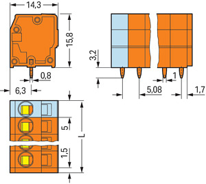 Leiterplattenklemme; 2,5 mm²; Rastermaß 5,08 mm; 5-polig; CAGE CLAMP®; 2,50 mm²; orange