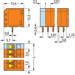 Leiterplattenklemme; 1,5 mm²; Rastermaß 3,81 mm; 6-polig; CAGE CLAMP®; 1,50 mm²; orange