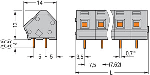 Klemmenleiste Ex e II 24-polig 2Lötstifte 7,5/7,62mm 2,5qmm li-gr
