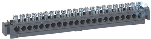 Legrand Klemmenleiste Universal, für Schienenmontage (Schiene 12 x 2 mm) bzw. Verteilermontage, Eingang: 1 x 6 bis 25 mm², Abgang: 21 x 1,5 bis 16 mm², Länge: 176 mm, max. 100 A/400 VAC bei 25 mm² Eingang, max. 80 A /400 VAC bei 16 mm² Eingang, nach IEC 60998-2-1.