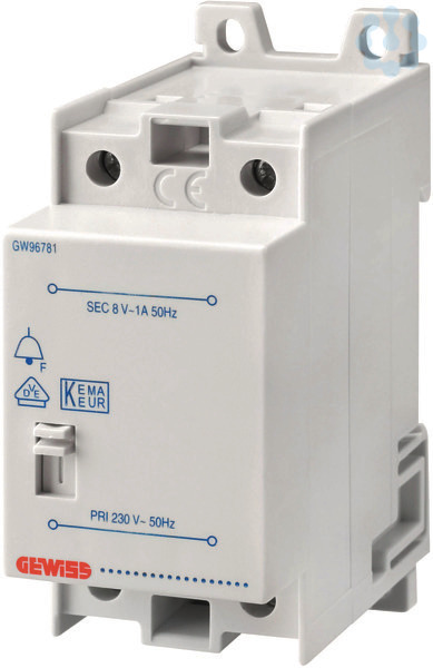 Klingeltrafo als Reiheneinbaugeraet nach EN 61558-1, EN61558-2-8 Anschluss (max): 6 qmm.