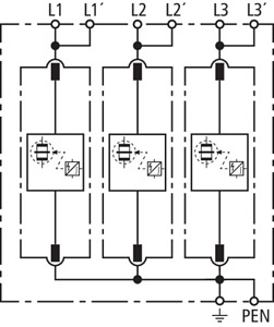 Mehrpoliger Kombiableiter DEHNventil modular, Typ 1 + Typ 2 nach EN 61643-11 auf Funkenstreckenbasis, bestehend aus Basisteil und gesteckten Schutzmodulen. Höchste Anlagenverfügbarkeit durch RADAX-Flow-Folgestrombegrenzung. Ermöglicht Endgeräteschutz. Zum Schutz von Niederspannungs-Verbraucheranlagen vor Überspannungen, auch bei direkten Blitzeinschlägen. Einsetzbar nach dem Blitz-Schutzzonen-Konzept an den Schnittstellen 0A – 2.