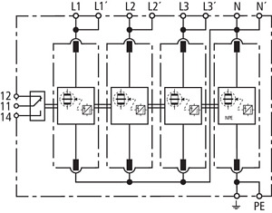 Mehrpoliger Kombiableiter DEHNventil modular, Typ 1 + Typ 2 nach EN 61643-11 auf Funkenstreckenbasis, bestehend aus Basisteil und gesteckten Schutzmodulen. Höchste Anlagenverfügbarkeit durch RADAX-Flow-Folgestrombegrenzung. Ermöglicht Endgeräteschutz. Zum Schutz von Niederspannungs-Verbraucheranlagen vor Überspannungen, auch bei direkten Blitzeinschlägen. Einsetzbar nach dem Blitz-Schutzzonen-Konzept an den Schnittstellen 0A – 2.