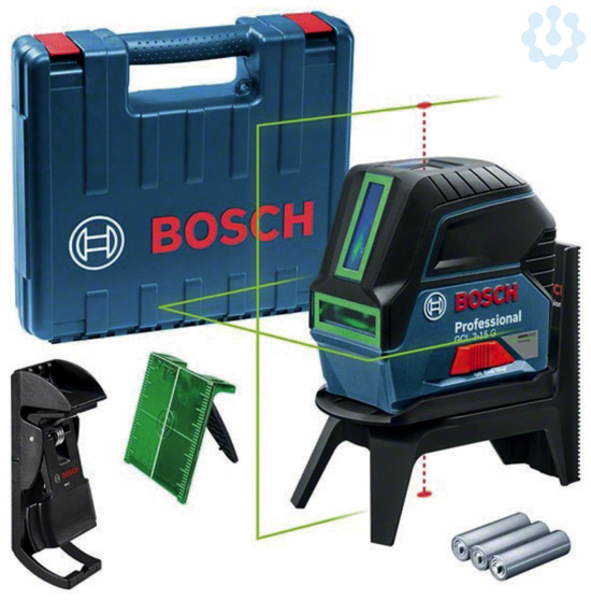 Kombilaser GCL 2-15 G. Bis zu viermal bessere Sichtbarkeit mit grünen Laserlinien und optimale Vielseitigkeit – der Bosch Kombilaser GCL 2-15 G Professional. Die zwei Laserlinien ermöglichen präzises vertikales und horizontales Ausrichten, während die roten Lotpunkte Übertragungsanwendungen erleichtern. Einfaches Ausrichten der Laserlinien um die Lotpunkte mit der vielseitigen Drehhalterung RM 1 Professional. Der GCL 2-15 G Professional eignet sich für verschiedene Arbeiten wie das Abhängen von Decken, die Installation von Abflussrohren und das Verlegen von Fußböden. Er bietet außerdem Punktübertragung zum Anbringen von Lampen. Der GCL 2-15 G Professional hat einen Laserlinien-Arbeitsbereich von bis zu 15 m und nivelliert sich in weniger als 4 Sekunden selbst. Dieser Kombilaser eignet sich ideal für die Verwendung mit der Drehhalterung RM 1 Professional, die über einen einfachen Gleitmechanismus schnell angebracht werden kann. Dank Staub- und Spritzwasserschutz nach IP 54 ist er sehr robust. Bei Ausschalten des Lasers wird die Pendelarretierung für einen sicheren Transport und eine praktische Lagerung automatisch aktiviert. Im Lieferumfang enthalten: Handwerkerkoffer, Drehhalterung RM 1 Professional (0 601 092 600), Deckenklemme, Laserzieltafel, 3x 1,5 V-LR6-Batterie (AA)