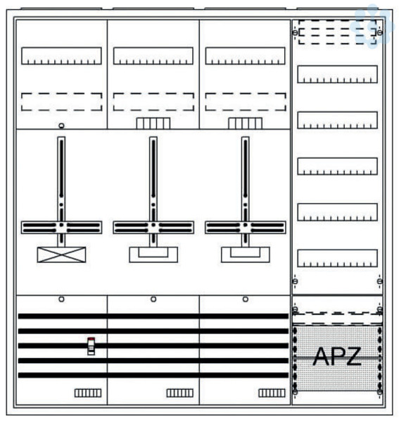 Die Zählerkomplettschränke der Baureihe ComfortLine mit Dreipunkt-Befestigung sind für die Aufputz- und teilversenkte Montage ausgelegt. Verwendung finden die Verteiler zum Beispiel im Innenbereich von Wohn-, Zweck- und Industriegebäuden. Die Gehäuse werden mit Tür ausgeliefert und verfügen über obere, untere und seitliche Leitungseinführungsmöglichkeiten. Einen Vorteil bildet der weite Türöffnungswinkel von 120°. Desweiteren können die Türen bei Bedarf einfach ausgehängt und werkzeuglos eingestellt werden. Besonders hervorzuheben sind die in den Feldern integrierten Leitungsführungskanäle, die z. B. für die Verlegung der Spannungsversorgung oder der Patchkabel des intelligentes Messsystems genutzt werden können. Durch den flachen Aufbau integriert sich der Verteiler sehr gut in jede Umgebung. Die Gehäuse erfüllen die Schutzart IP44 (IP31 nach DIN VDE 0603-1). Geltende Normen: DIN VDE 0603-1, DIN 43870-1, Farbe weiß RAL 9016 und pulverbeschichtet.