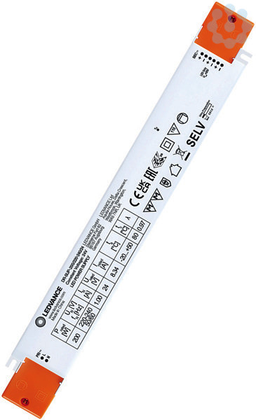 Konstantspannungs LED-Treiber mit langer Lebensdauer. Produkteigenschaften: Verfügbar in 30 W, 60 W, 100 W und 200 W. Integrierte Kabelklemme für unabhängige Installation. Lebensdauer: bis zu 60.000 h (bei max. tc Temperatur). Schutzart: IP20. Niedriger Ripplestrom < 5%. Versorgungsspannung: 220…240 V. Betriebsfrequenz: 50/60 Hz. Betrieb mit weniger als 60 V: Sicherheitskleinspannung (SELV). Reversibler Übertemperatur-, Überlast-, Kurzschluss- und Arbeitsstromschutz. Produktvorteile: Optimiert für den Betrieb mit 24 V flexiblen LED-Lichtband. Bewährte, lange Lebensdauer bei maximal zulässigen Temperaturen. 5 Jahre Garantie. Wartungsfreier Betrieb und minimale Installationskosten. Schnelle und einfache Montage. Hohe Effizienz und Zuverlässigkeit. Anwendungsgebiete: Voutenbeleuchtung, auch bei beengten Platzverhältnissen. Wallwasher-Effektbeleuchtung in Wohnräumen, Esszimmern, Schlafzimmern, Eingangsbereichen. Büros, Einkaufszentren, Krankenhäuser, Restaurants, Hotels. Für SELV-Installationen in Innenräumen.