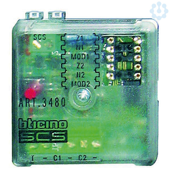 Modul für die elektromagnetischen Ruhekontakte (NC) von 2 Leitungen, 2 DIN-Module, Anschlussmöglichkeit symmetrischer und unsymmetrischer Leitungen – LED-Anzeige mit Ereignisspeicherung – aktivierbarer Hilfskanal für Vorwarnung, Abmessungen L × B × T: 41 × 41 × 19 mm