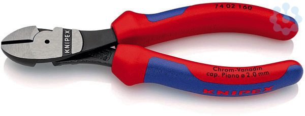 74 02 160 Kraft-Seitenschneider Für härteste, dauerhafte Beanspruchung. Hohe Schneidleistung bei geringem Kraftaufwand durch optimale Abstimmung von Schneidenwinkel und Übersetzungsverhältnis. Präzisionsschneiden zusätzlich induktiv gehärtet, (Schneidenhärte ca. 64 HRC) für alle Drahtsorten einschließlich Pianodraht. - Schneidwerte mittelharter Draht (Durchmesser): Ø 3,4mm - Schneidwerte harter Draht (Durchmesser): Ø 2,5mm - Schneidwerte Pianodraht (Durchmesser): Ø 2,0mm