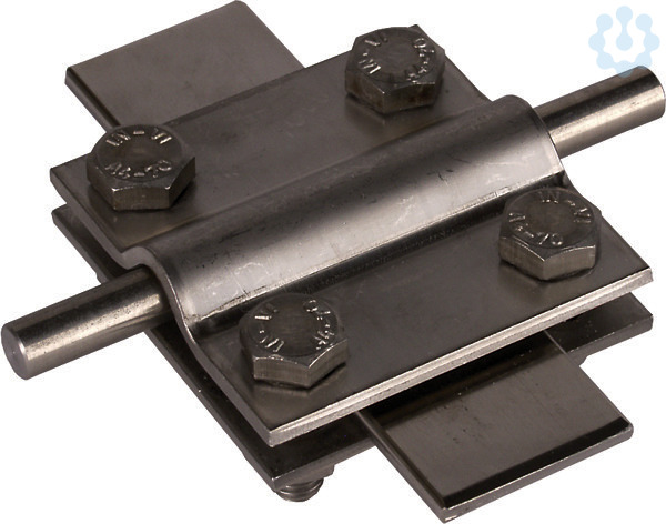 Kreuzstück nach DIN EN 62561-1, für ober- und unterirdische Verbindung von Rund- und Flachleitern. Ausführung ohne Zwischenplatte mit Schrauben M8.