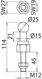 Kugelfestpunkt gerade D=25mm m. Gewindebolzen M12x45, Mutter