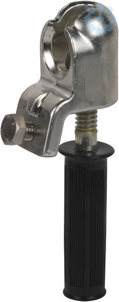 Kugelkopfhaube starr mit Handgriff aus Kunststoff als erdseitiges Anschlusselement nach DIN VDE 0683-100 (EN/IEC 61230) für Kugelfestpunkte zur erdseitigen Bestückung von Erdungs- und Kurzschließseilen. Mit Verdrehungsschutz Ausführung PK 1.
