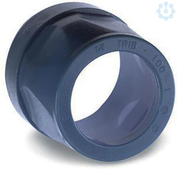 Gerade Kunststoffbuchse, eine feste Verbindung zum Aufstecken auf starre Metallschutzschlaeuche oder Rohre, Schlauch-Nenngroeße 3 1/2 ", ohne Gewinde, aus UL 94 V-1 zugelassenem, flammwidrigem, blauem Thermoplastik