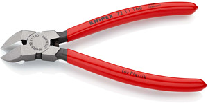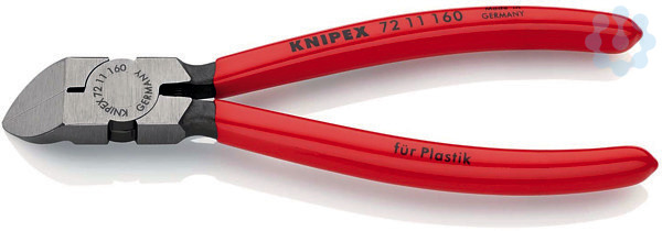 72 11 160 Seitenschneider für Kunststoff Mit plangeschliffenen Schneidflächen. Zum flächenbündigen Trennen von gespritzten Kunststoffteilen und Angussresten. Schneidet weiche Werkstoffe wie Blei glatt ab. Mit Öffnungsfeder. 45° gewinkelte Schneiden. - Abmessung Winkel: 45
