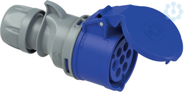 CEE-Kupplung 16A 7p 9h IP44/IP54 SHARK; Gehäusematerial: PA6; Nennstrom: 16A; Polzahl: 7 (6P+PE); Uhrzeit-Stellung: 9h; Nennspannung/Frequenz: 220-250V~ / 50+60Hz; Kontakte: Messing vernickelt; Anschlusstechnik: Schraubklemmen; Schutzart: IP44/IP54