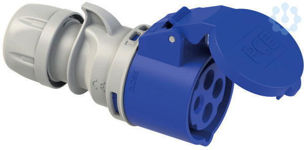 CEE-Kupplung 32A 4p 9h IP44/IP54 SHARK; Gehäusematerial: PA6; Nennstrom: 32A; Polzahl: 4 (3P+PE); Uhrzeit-Stellung: 9h; Nennspannung/Frequenz: 200-250V~ / 50+60Hz; Kontakte: Messing; Anschlusstechnik: Schraubklemmen; Schutzart: IP44/IP54