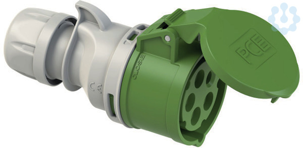 CEE-Kupplung 32A 5p 2h IP44/IP54 SHARK; Gehäusematerial: PA6; Nennstrom: 32A; Polzahl: 5 (3P+N+PE); Uhrzeit-Stellung: 2h; Nennspannung/Frequenz: >50V~ / 300-500Hz; Kontakte: Messing; Anschlusstechnik: Schraubklemmen; Schutzart: IP44/IP54