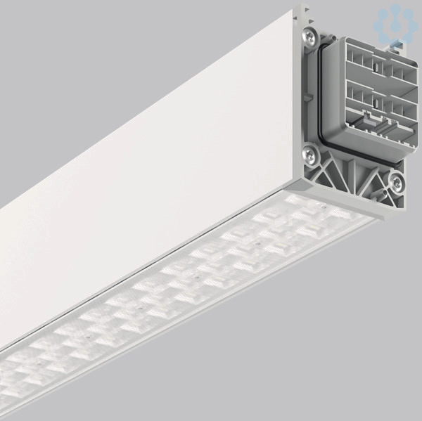 Schnellmontage-Komplettmodul für den universellen Einsatz als Lichtband. Systemprofil aus Aluminium-Strangpressprofil, pulverbeschichtet. Hocheffiziente LED-Einheiten mit optimaler Lichtlenkung durch präzise Linsenoptik aus Kunststoff (PC) klar. Lichtverteilung asymmetrisch. Einfache und werkzeuglose Montage von Systemprofilen mittels separatem Zubehör für Seil-, Ketten- oder Deckenaufhängung. Werkzeuglos steckbar und durch mechanischen Verbinder gesichert. 14-poliger LINEDO-Stecker (5 x 2,5 mm² / 9 x 1,5 mm²) für zusätzliche Anwendungen im Lichtmanagement oder für die Integration von Sicherheitsbeleuchtung. Einfache Wahl der Phaseneinstellung durch patentiertes System von außen. Einspeisungsmodul, Verbindungs- und Montagezubehör bitte separat bestellen. Leuchten mit begrenzter Oberflächentemperatur nach DIN EN 60598-2-24 zur Verwendung in einer Umgebung, in der eine Ablagerung von nichtleitfähigem Staub auf der Leuchte erwartet werden kann.