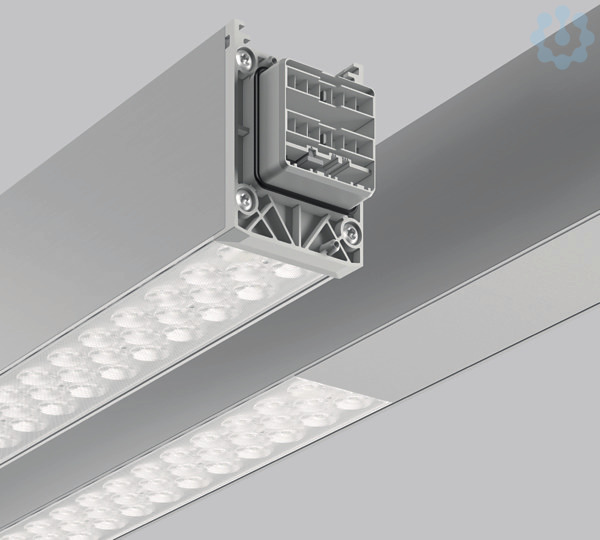 Schnellmontage-Komplettmodul für den universellen Einsatz als Lichtband. Lichtteilung (1=LED, 0= Blind): 10001000. Systemprofil aus Aluminium-Strangpressprofil, eloxiert. Hocheffiziente LED-Einheiten mit optimaler Lichtlenkung durch präzise Linsenoptik aus Kunststoff (PC) klar. Blindeinheiten mit Abdeckung aus Kunststoff in Gehäusefarbe. Lichtverteilung breitstrahlend. Einfache und werkzeuglose Montage von Systemprofilen mittels separatem Zubehör für Seil-, Ketten- oder Deckenaufhängung. Werkzeuglos steckbar und durch mechanischen Verbinder gesichert. 5-poliger LINEDO-Stecker (5 x 2,5 mm²). Einfache Wahl der Phaseneinstellung durch patentiertes System von außen. Einspeisungsmodul, Verbindungs- und Montagezubehör bitte separat bestellen. Leuchten mit begrenzter Oberflächentemperatur nach DIN EN 60598-2-24 zur Verwendung in einer Umgebung, in der eine Ablagerung von nichtleitfähigem Staub auf der Leuchte erwartet werden kann.