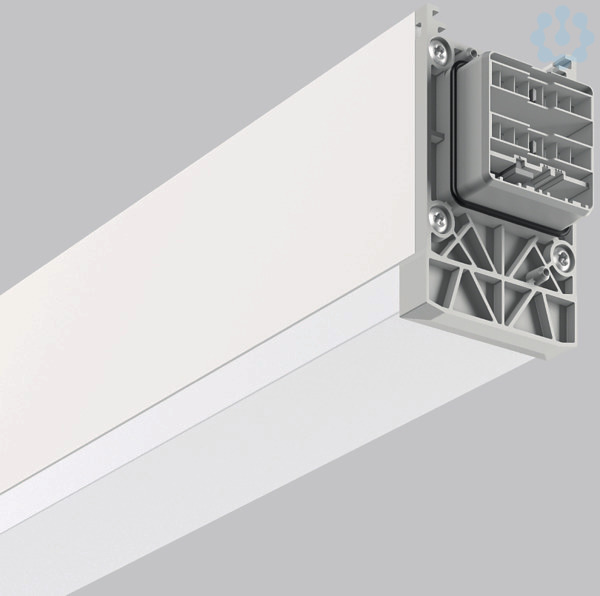 Schnellmontage-Komplettmodul für den universellen Einsatz als Lichtband. Systemprofil aus Aluminium-Strangpressprofil, pulverbeschichtet. Hocheffiziente LED-Einheiten mit opalem Diffusorprofil aus vergilbungsfreiem PMMA mit erhöhtem Indirektanteil. Einfache und werkzeuglose Montage von Systemprofilen mittels separatem Zubehör für Seil-, Ketten- oder Deckenaufhängung. Werkzeuglos steckbar und durch mechanischen Verbinder gesichert. 7-poliger LINEDO-Stecker (5 x 2,5 mm² / 2 x 1,5 mm²). Einfache Wahl der Phaseneinstellung durch patentiertes System von außen. Einspeisungsmodul, Verbindungs- und Montagezubehör bitte separat bestellen. Leuchten mit begrenzter Oberflächentemperatur nach DIN EN 60598-2-24 zur Verwendung in einer Umgebung, in der eine Ablagerung von nichtleitfähigem Staub auf der Leuchte erwartet werden kann.