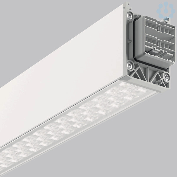 Schnellmontage-Komplettmodul für den universellen Einsatz als Lichtband. Systemprofil aus Aluminium-Strangpressprofil, pulverbeschichtet. Hocheffiziente LED-Einheiten mit optimaler Lichtlenkung durch präzise Linsenoptik aus Kunststoff (PC) klar. Lichtverteilung doppelt asymmetrisch. Einfache und werkzeuglose Montage von Systemprofilen mittels separatem Zubehör für Seil-, Ketten- oder Deckenaufhängung. Werkzeuglos steckbar und durch mechanischen Verbinder gesichert. 14-poliger LINEDO-Stecker (5 x 2,5 mm² / 9 x 1,5 mm²) für zusätzliche Anwendungen im Lichtmanagement oder für die Integration von Sicherheitsbeleuchtung. Einfache Wahl der Phaseneinstellung durch patentiertes System von außen. Einspeisungsmodul, Verbindungs- und Montagezubehör bitte separat bestellen. Leuchten mit begrenzter Oberflächentemperatur nach DIN EN 60598-2-24 zur Verwendung in einer Umgebung, in der eine Ablagerung von nichtleitfähigem Staub auf der Leuchte erwartet werden kann.