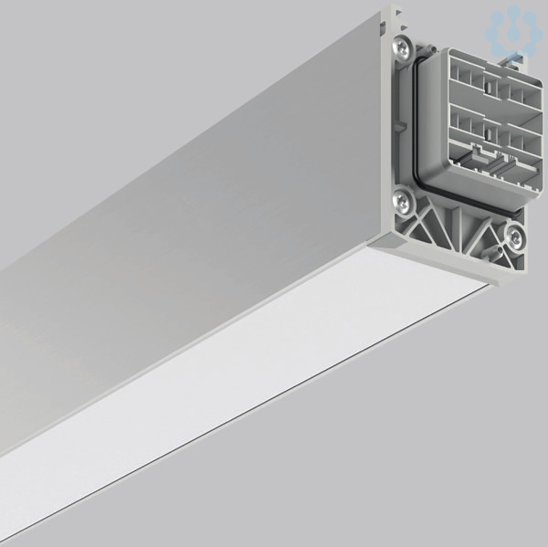 Schnellmontage-Komplettmodul für den universellen Einsatz als Lichtband. Systemprofil aus Aluminium-Strangpressprofil, eloxiert. Hocheffiziente LED-Einheiten mit bündigem opalen Diffusor aus vergilbungsfreiem PMMA. Einfache und werkzeuglose Montage von Systemprofilen mittels separatem Zubehör für Seil-, Ketten- oder Deckenaufhängung. Werkzeuglos steckbar und durch mechanischen Verbinder gesichert. 14-poliger LINEDO-Stecker (5 x 2,5 mm² / 9 x 1,5 mm²) für zusätzliche Anwendungen im Lichtmanagement oder für die Integration von Sicherheitsbeleuchtung. Einfache Wahl der Phaseneinstellung durch patentiertes System von außen. Einspeisungsmodul, Verbindungs- und Montagezubehör bitte separat bestellen. Leuchten mit begrenzter Oberflächentemperatur nach DIN EN 60598-2-24 zur Verwendung in einer Umgebung, in der eine Ablagerung von nichtleitfähigem Staub auf der Leuchte erwartet werden kann.