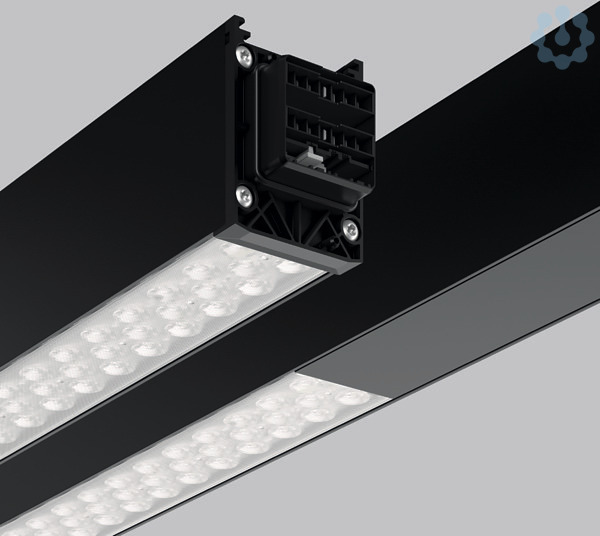 Schnellmontage-Komplettmodul für den universellen Einsatz als Lichtband. Lichtteilung (1=LED, 0= Blind): 10001000. Systemprofil aus Aluminium-Strangpressprofil, pulverbeschichtet. Hocheffiziente LED-Einheiten mit optimaler Lichtlenkung durch präzise Linsenoptik aus Kunststoff (PC) klar. Blindeinheiten mit Abdeckung aus Kunststoff in Gehäusefarbe. Lichtverteilung tief-breitstrahlend. Einfache und werkzeuglose Montage von Systemprofilen mittels separatem Zubehör für Seil-, Ketten- oder Deckenaufhängung. Werkzeuglos steckbar und durch mechanischen Verbinder gesichert. 5-poliger LINEDO-Stecker (5 x 2,5 mm²). Einfache Wahl der Phaseneinstellung durch patentiertes System von außen. Einspeisungsmodul, Verbindungs- und Montagezubehör bitte separat bestellen. Leuchten mit begrenzter Oberflächentemperatur nach DIN EN 60598-2-24 zur Verwendung in einer Umgebung, in der eine Ablagerung von nichtleitfähigem Staub auf der Leuchte erwartet werden kann.