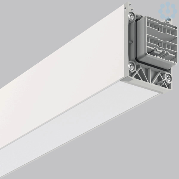 Schnellmontage-Komplettmodul für den universellen Einsatz als Lichtband. Systemprofil aus Aluminium-Strangpressprofil, pulverbeschichtet. Hocheffiziente LED-Einheiten mit bündigem opalen Diffusor aus vergilbungsfreiem PMMA. Einfache und werkzeuglose Montage von Systemprofilen mittels separatem Zubehör für Seil-, Ketten- oder Deckenaufhängung. Werkzeuglos steckbar und durch mechanischen Verbinder gesichert. 5-poliger LINEDO-Stecker (5 x 2,5 mm²). Einfache Wahl der Phaseneinstellung durch patentiertes System von außen. Einspeisungsmodul, Verbindungs- und Montagezubehör bitte separat bestellen. Leuchten mit begrenzter Oberflächentemperatur nach DIN EN 60598-2-24 zur Verwendung in einer Umgebung, in der eine Ablagerung von nichtleitfähigem Staub auf der Leuchte erwartet werden kann.
