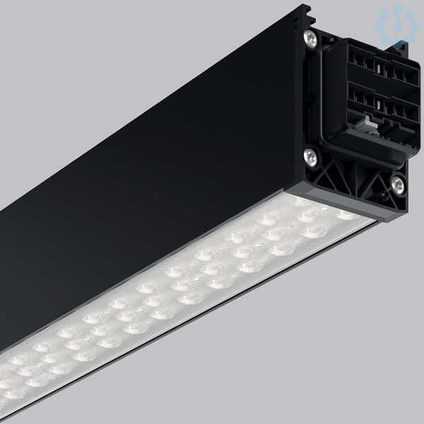 Schnellmontage-Komplettmodul für den universellen Einsatz als Lichtband. Systemprofil aus Aluminium-Strangpressprofil, pulverbeschichtet. Hocheffiziente LED-Einheiten mit optimaler Lichtlenkung durch präzise Linsenoptik aus Kunststoff (PC) klar. Lichtverteilung engstrahlend. Einfache und werkzeuglose Montage von Systemprofilen mittels separatem Zubehör für Seil-, Ketten- oder Deckenaufhängung. Werkzeuglos steckbar und durch mechanischen Verbinder gesichert. 7-poliger LINEDO-Stecker (5 x 2,5 mm² / 2 x 1,5 mm²). Einfache Wahl der Phaseneinstellung durch patentiertes System von außen. Einspeisungsmodul, Verbindungs- und Montagezubehör bitte separat bestellen. Leuchten mit begrenzter Oberflächentemperatur nach DIN EN 60598-2-24 zur Verwendung in einer Umgebung, in der eine Ablagerung von nichtleitfähigem Staub auf der Leuchte erwartet werden kann.