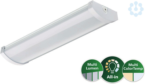 L602 mm, Stahl, Weiß, Signalweiß (RAL9003), Netzteil (Ein/Aus), All-in, Multi Lumen, All-in, Multi Color Temperature, 1700 lm, 1900 lm, 2200 lm, 2600 lm, 20 W, 17 W, 14 W, 12 W, 130 lm/W, 3000 K, 4000 K, (0.38,0.38)SDCM3;(0.44,0.40)SDCM3, Opal, Opal, Polykarbonat, IP20/44 | Fernhalten von Fingern; Drahtschutz, sprühwassergeschützt, IK06 | 1 J, SchutzklasseI, Schnellsteckverbinder, 5-polig, Durchgangsverdrahtung, 3-phasig