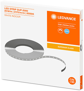 LED-Bänder mit 2000 lm/m für professionelle Anwendungen mit sehr guter Farbwiedergabe und Lebensdauer. Produkteigenschaften: Flexibles und teilbares LED-Band. Kleinste teilbare Einheit: 50 mm. Lebensdauer (L80/B10): bis zu 60.000 h bei Tp: 45°C. Lichtstrom: 2000 lm/m. Sehr gute Farbwiedergabeindex Ra: > 90. Anfängliche Farbkonsistenz: ≤ 3 SDCM (Schwellwerteinheit). Großes Spektrum an Farbtemperaturen: von Warmweiß bis kühles Tageslicht. IESNA LM79-, LM80 konform. Dimmbar mit geeigneten Treibern, siehe auch www.ledvance.de/dim). Produktvorteile: Große Designfreiheit dank langer, flexible LED-Lichtbänder. Einfache Installation, werkzeugloser Anschluss. Einfache Montage an vielen glatten Oberflächen durch selbstklebendes Klebeband. Maximale Flexibilität dank großer Auswahl an Zubehör. Einfacher Anschluss durch beidseitig integrierte Kabel. Anwendungsgebiete: Allgemeine Innenbeleuchtung. Industrie. Büros, Verkaufs- und Konferenzräume. Architekturbeleuchtung. Technische Ausstattung: Verbindungen, Profile und Abdeckungen für verschiedene Montagemöglichkeiten verfügbar.
