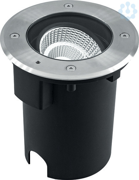 Der Leuchtenkörper der Bodeneinbauleuchte ist aus massivem Aluminium gefertigt, der obere Abdeckring hingegen aus V2A-Edelstahl und kann für vielfältige Anwendungen im Außenbereich verwendet werden. Die Montage erfolgt mittels der im Lieferumfang befindlichen Kunststoff-Einbauhülse. Über eine Justierschraube kann die Leuchte im eingebauten Zustand jederzeit geschwenkt werden, der Schwenkwinkel beträgt hierbei 20°. Außerdem entstehen auch keine zusätzlichen Kosten für ein Vorschaltgerät, da der Anschluss direkt an die 230V-Zuleitung erfolgt. Zur Vermeidung von Kondenswasser befindet sich auf der Unterseite der Leuchte ein selbstentlüftendes Entlüftungsventil. Die maximale Überfahrgeschwindigkeit beträgt 20km/h. Die Leuchte hat eine 0,50m lange Anschlussleitung (ÖLFLEX CLASSIC 110 BLACK 3 x 0,75mm²) mit freien Aderenden. Der Ausstrahlwinkel beträgt 60°, Bemessungslebensdauer L80/B10 bei 25 °C: 39300h.